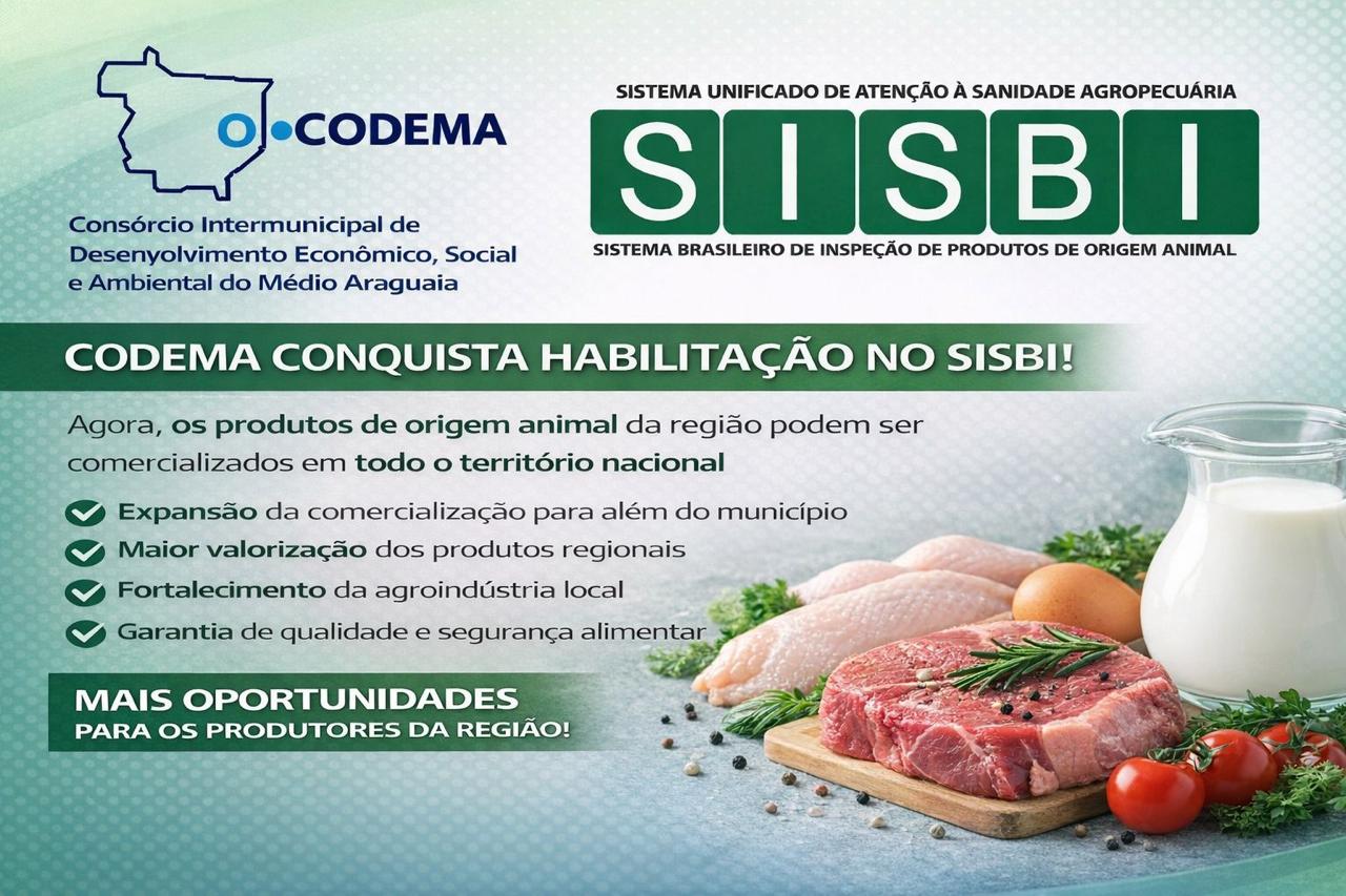 O Consórcio Intermunicipal de Desenvolvimento Econômico, Social e Ambiental do Médio Araguaia (CODEMA) conquistou a habilitação no Sistema Brasileiro de Inspeção de Produtos de Origem Animal (SISBI), um avanço importante para o fortalecimento das agroindústrias da região.